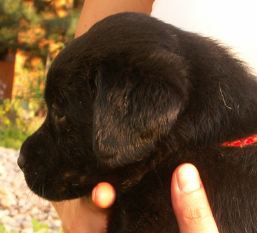 Největší psí slečna z celého vrhu a jako jediná má nádhernou bílou náprsenku. Amálka od nás odcestovala do Německého Zorbigu s paní Veronikou Tiede. Bude bydlet na jejich farmě a bude jim jí hlídat :).